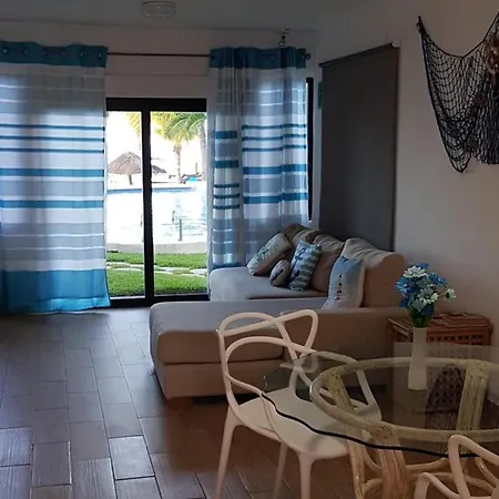 The property comes with coffee and tea making facilities and an equipped kitchen featuring a microwave oven, a refrigerator, and kitchenware. Isla Mujeres airport is also located 25 km from the 2-bedroom apartment. There is a terrace with the sea view.